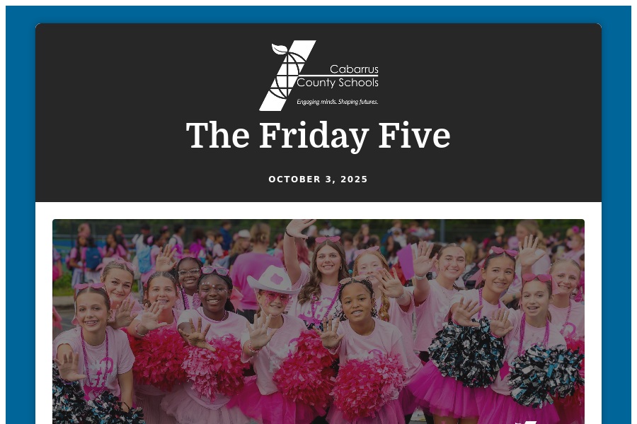 The Friday Five October 3, 2025 Happy Friday, Cabarrus County Schools families! It's been a great week! We hope you enjoy the weekend, and we look forward to see. . .